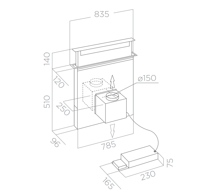 Odsavač par (digestoř) je vybaven Tukovým filtrem  ALU  a Uhlíkovým filtrem. Užitečnou funkcí je  TEMPORIZACE . Po aktivování této funkce se odsavač automaticky vypne se zpožděním. Samozřejmostí je signalizace nutnosti čištění tukových i uhlíkových filtrů. Tento odsavač par (digestoř) nelze použít s plynovou varnou deskou.
