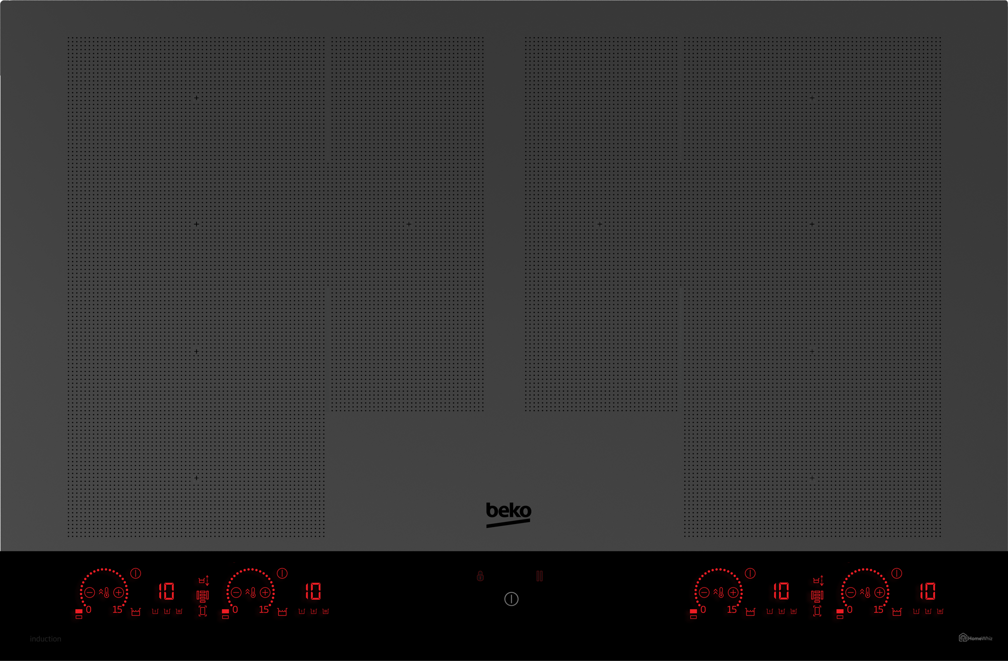 Konfigurace plotýnek 8 indukčních zón s 2 flexi zónami a 2 rozšiřitelnými zónami