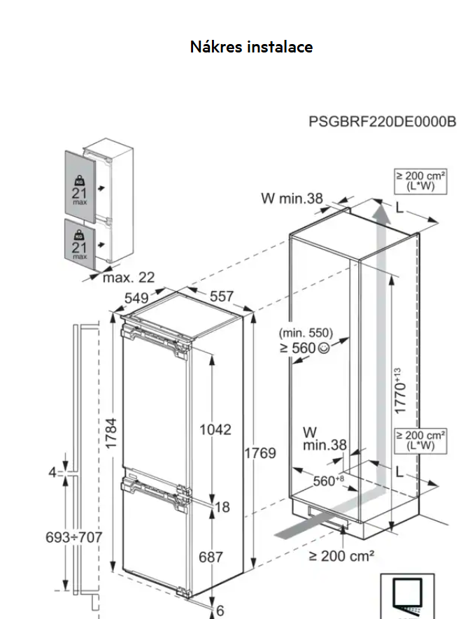 Rozměry spotřebiče VxŠxH (mm): 1769 x 557 x 549